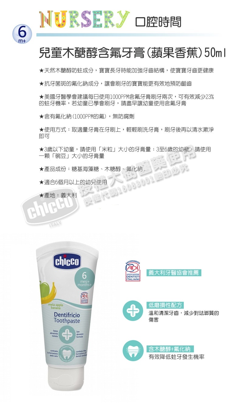 品名:【CHICCO】兒童木醣醇含氟牙膏(蘋果香蕉)