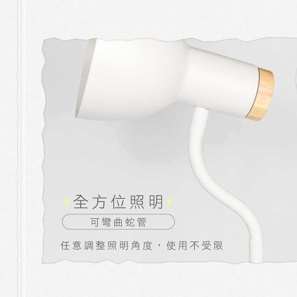.E27燈泡可拆式,可彎曲蛇管調整角度
