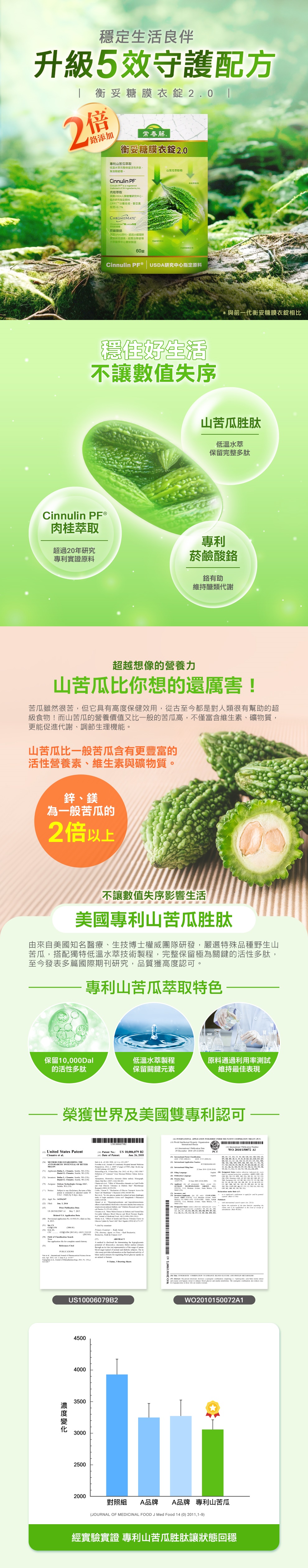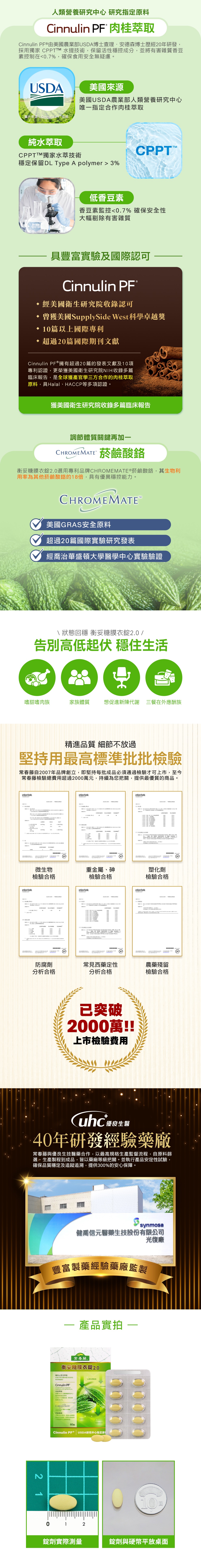 • 成分:山苦瓜萃取物、肉桂萃取物(肉桂萃取物、糊精)、微結晶狀α-纖維素、聚乙烯吡咯烷酮、鋅酵母、馬齒莧萃取粉(馬齒莧萃取物、麥芽糊精、二氧化矽)、硬脂酸鎂、菸鹼酸鉻複合物(菸鹼酸鉻、氯化鈉);膜衣成分:高防潮水性膜衣(聚乙烯醇、滑石粉、二氧化鈦、脂肪酸甘油酯、硫酸月桂酯鈉)、二氧化鈦、食用黃色四號鋁麗基、食用黃色五號鋁麗基、食用藍色一號鋁麗基。