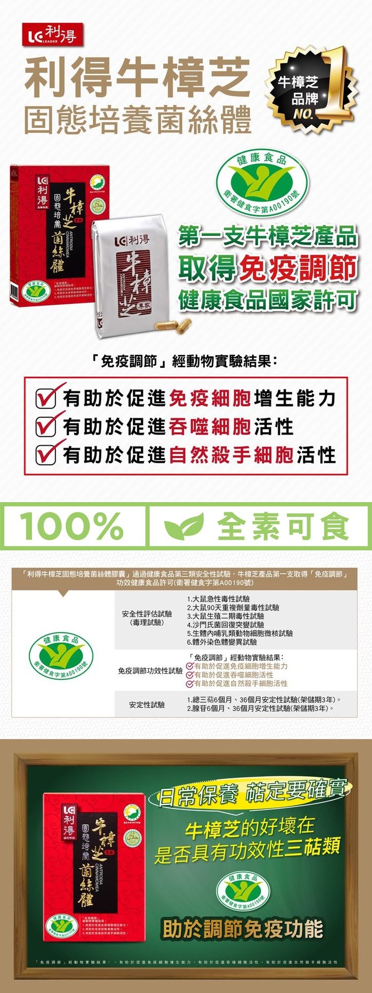 品名:【利得】牛樟芝固態培養菌絲體膠囊