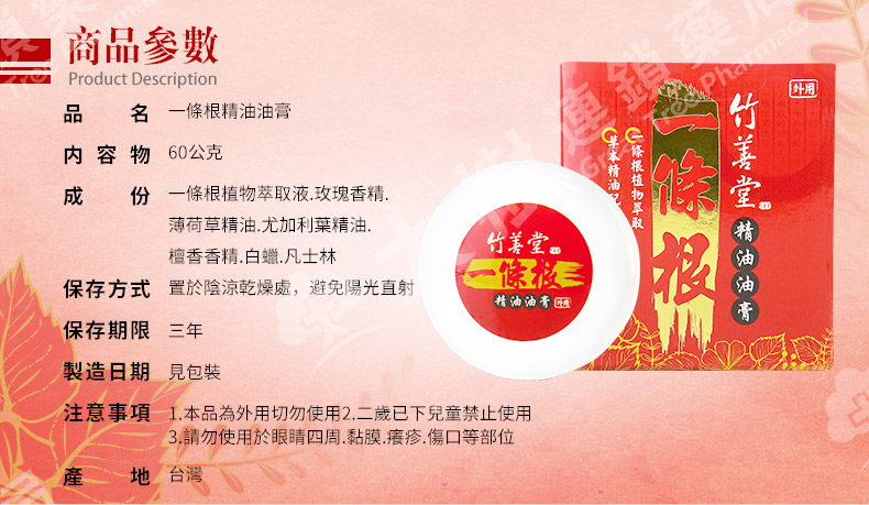 竹善堂 一條根油膏60g
