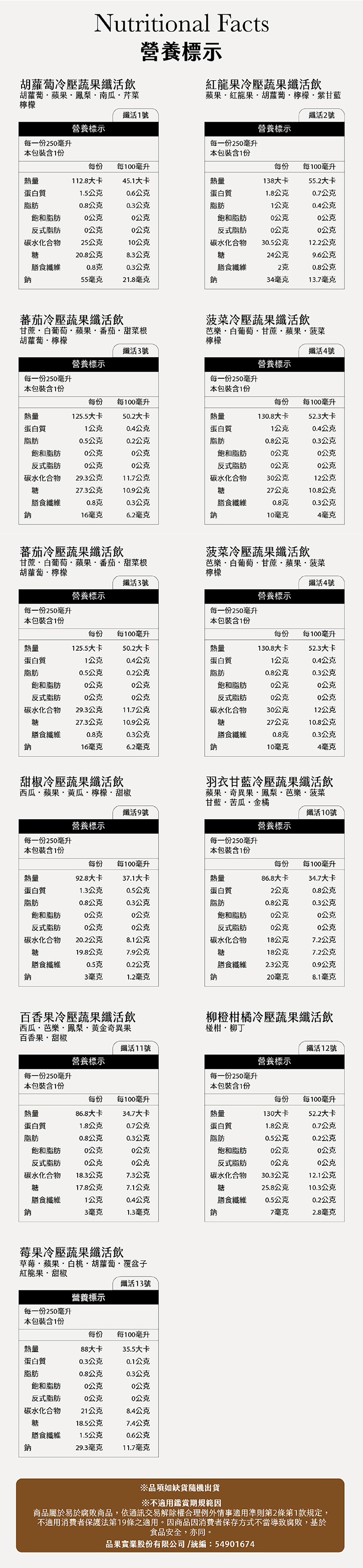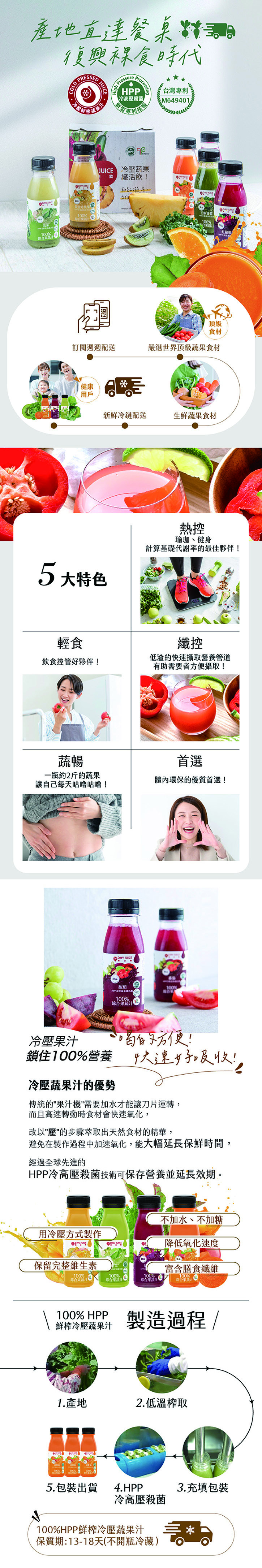 品名:【Day Juice果日飲】冷壓鮮榨蔬果汁纖活1-6號