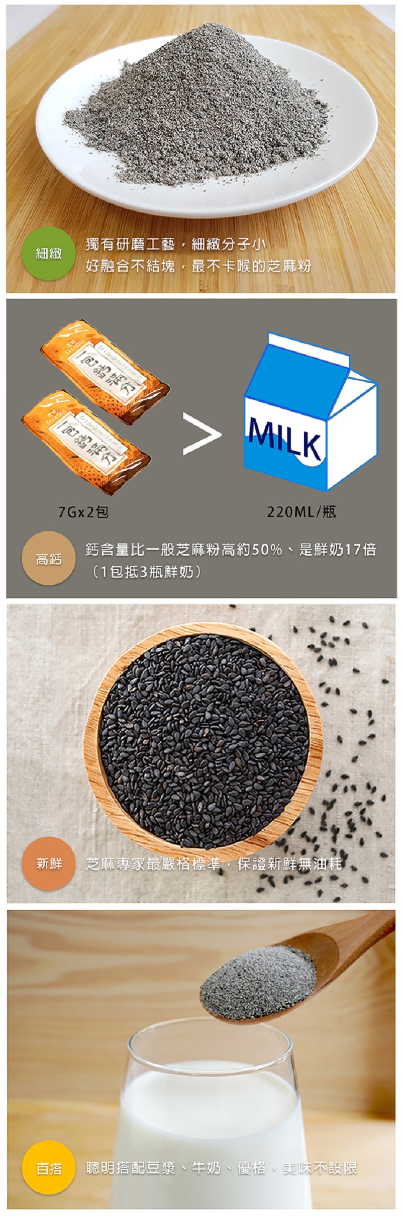 香醇細緻不結塊,新鮮高鈣芝麻粉。〔純素〕