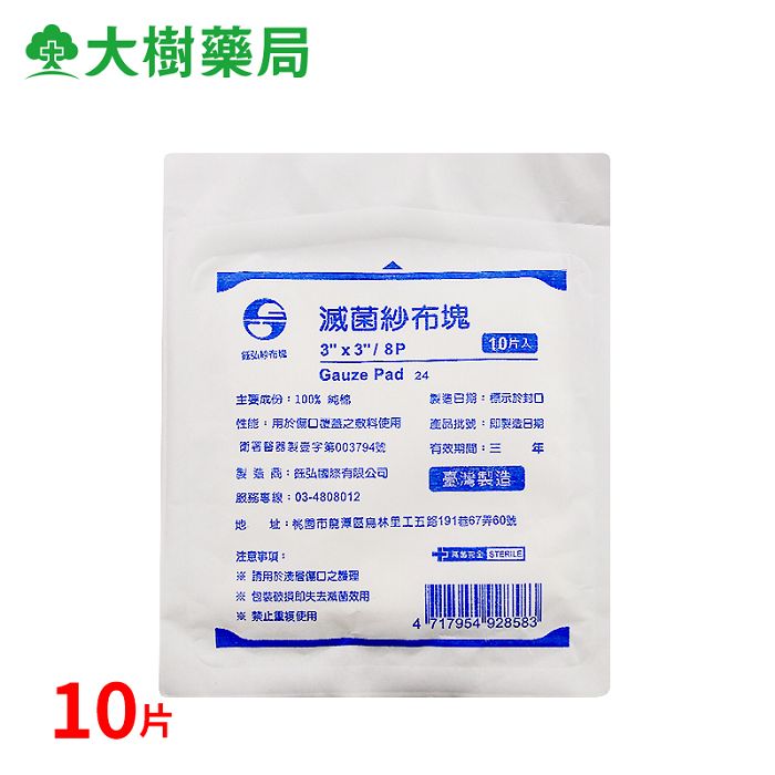 鈺弘 滅菌紗布墊3*3*8(10片/包)