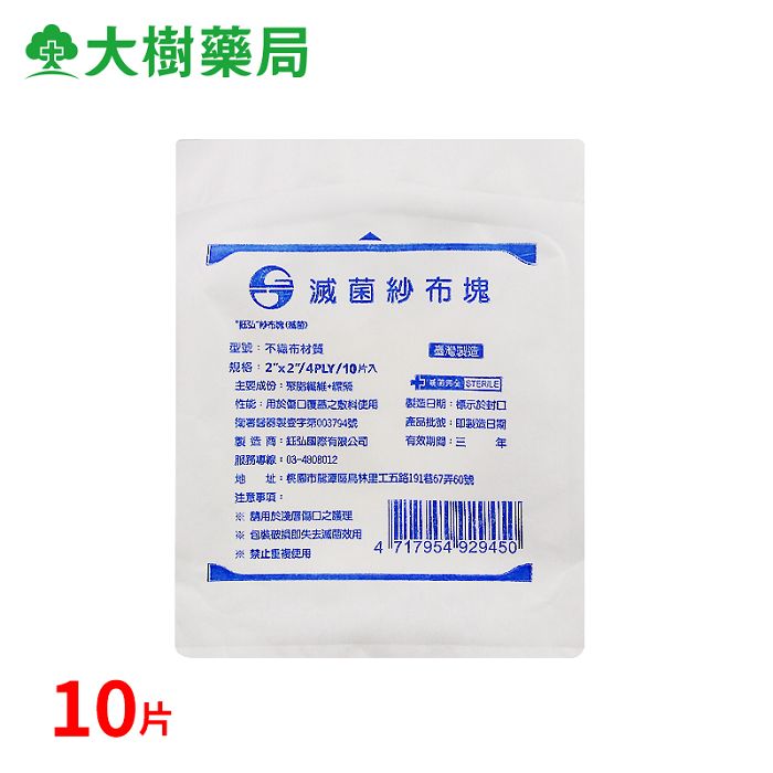 鈺弘 滅菌不織布紗布墊2x2(10片/包)