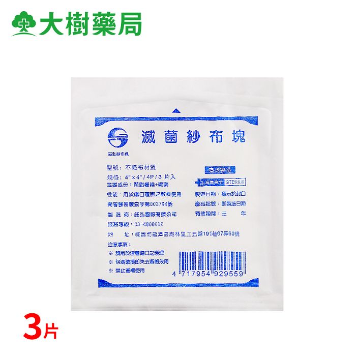 鈺弘 滅菌不織布紗布墊4x4(3片/包)
