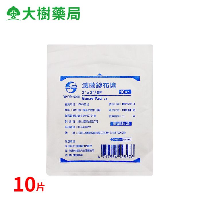 鈺弘 滅菌紗布墊2*2*8(10片/包)