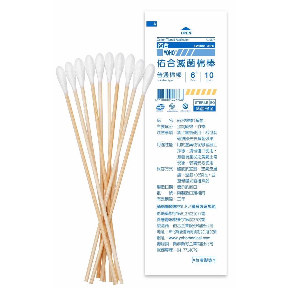 【佑合】滅菌6吋普通棉棒(10入/包)