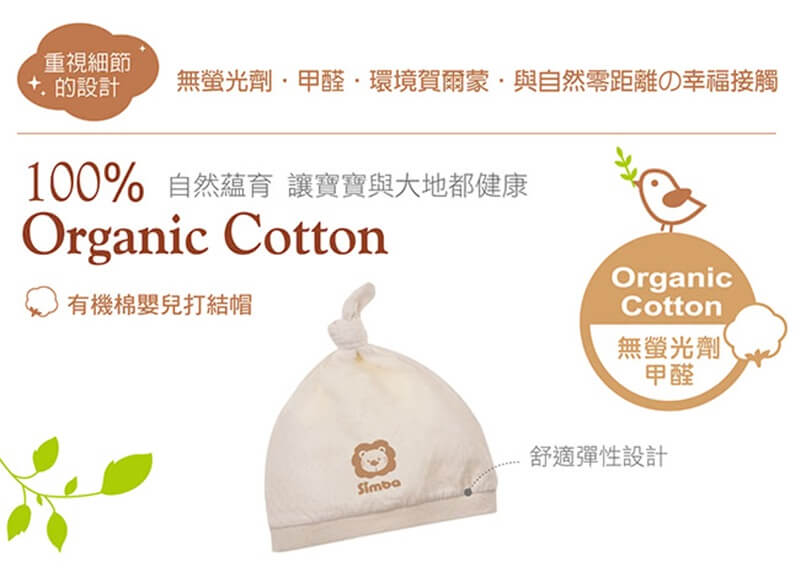 【Simba 小獅王辛巴】有機棉嬰兒打結帽
