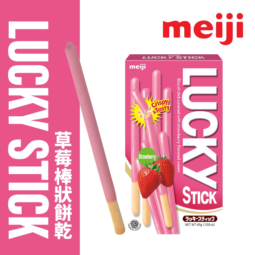 .品名:【Meiji 明治】Lucky草莓口味棒狀餅乾(45g)