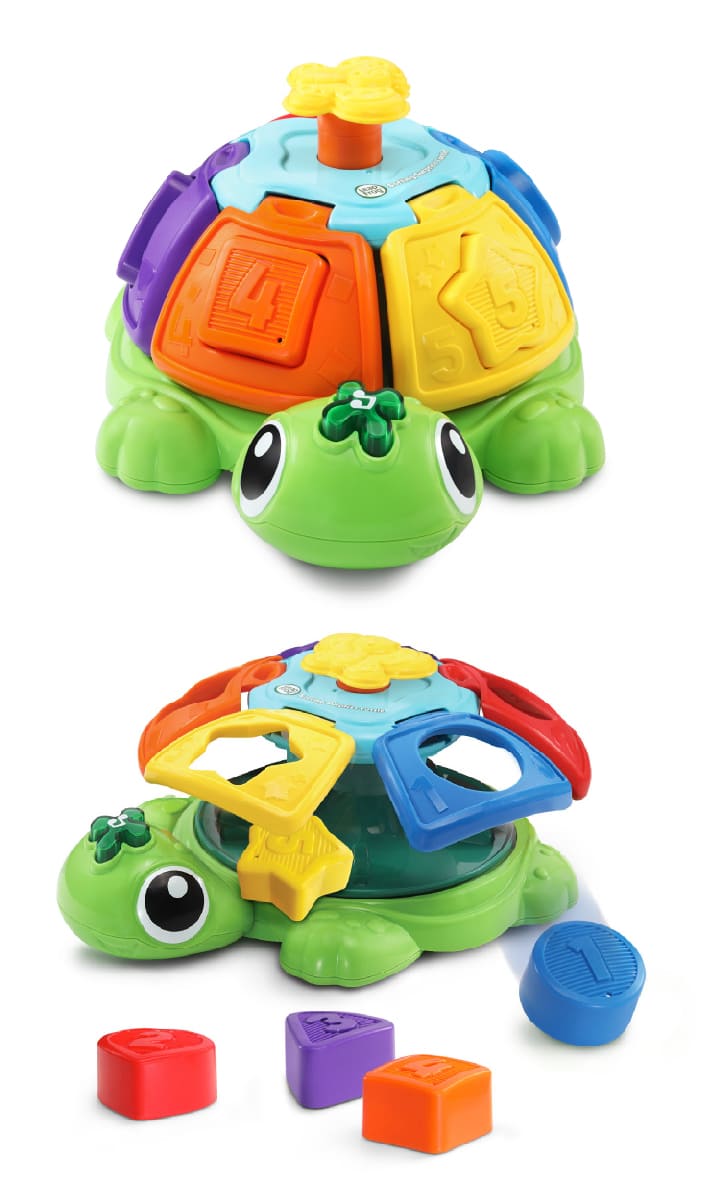 ● 按下背部蝴蝶按鈕,龜殼會旋轉讓投入的積木會飛出。