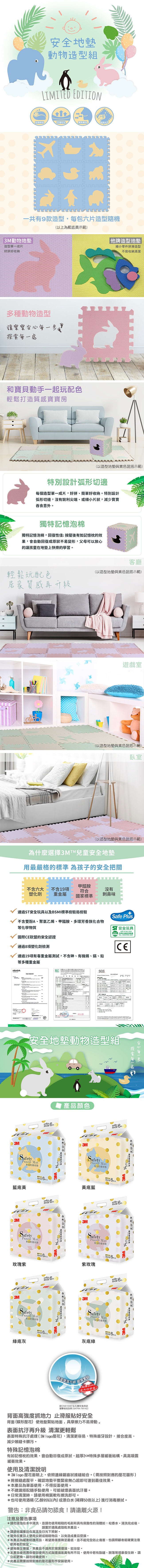 【3M】動物造型安全防撞地墊 紫玫瑰(6片裝)