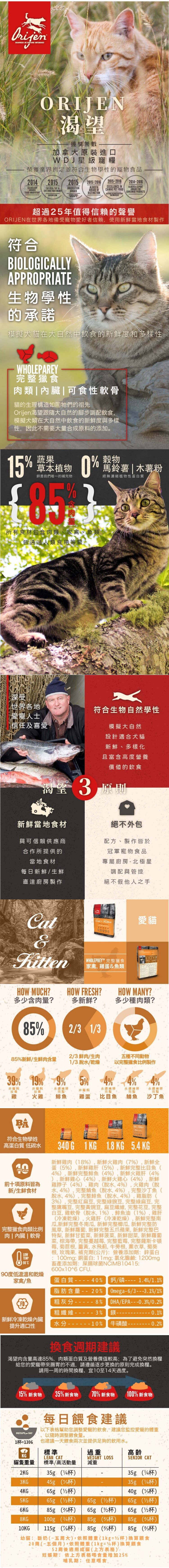 【Orijen 歐睿健】鮮雞愛貓無榖貓飼料(1kg)