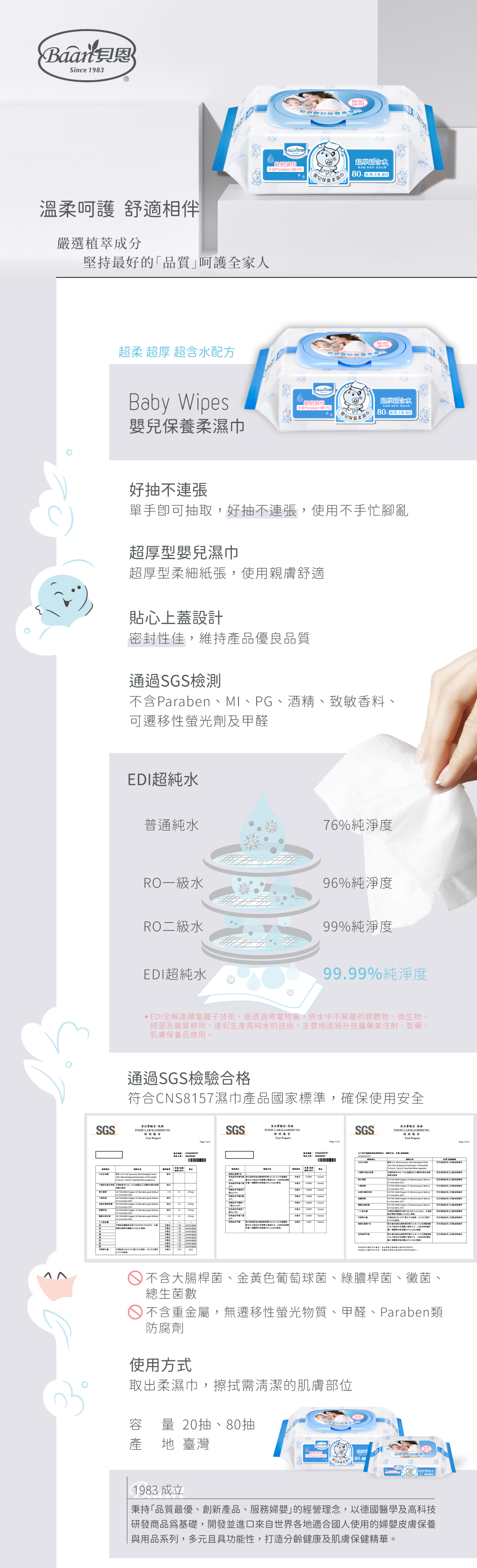 【Baan 貝恩】全新配方嬰兒保養柔濕巾(80抽X3包/袋)