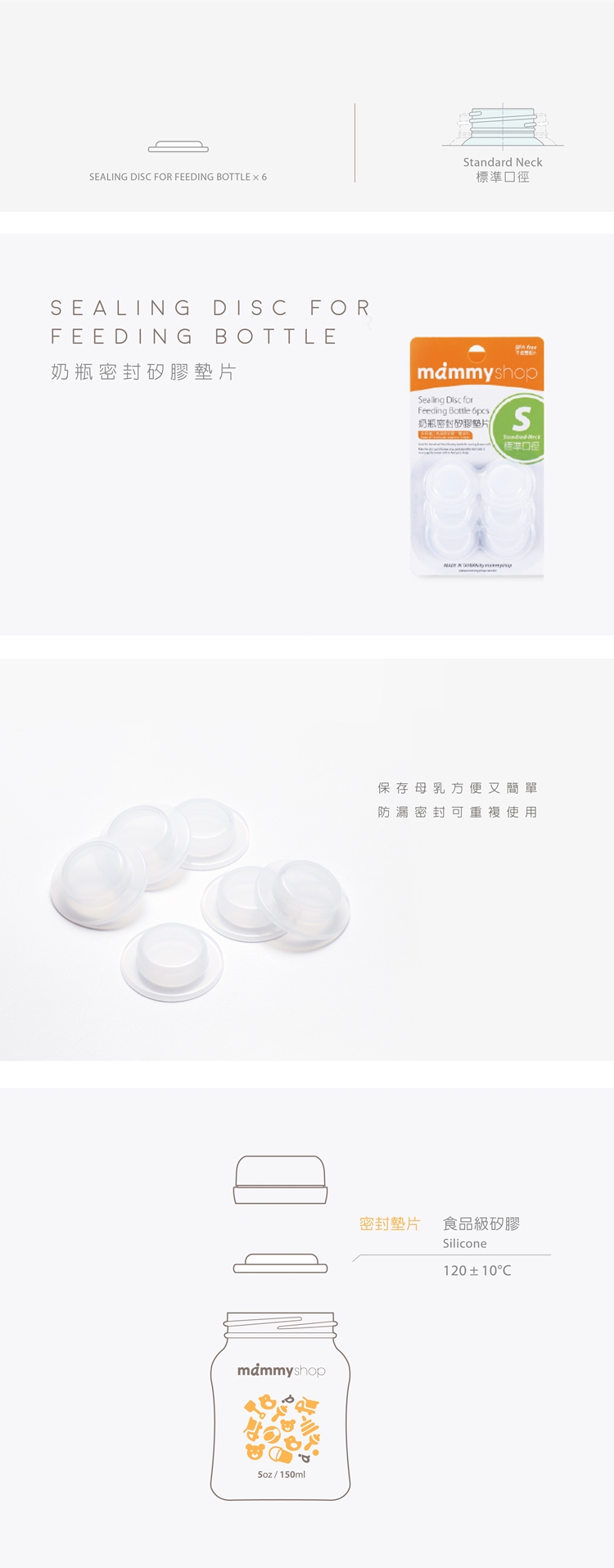 內容物:奶瓶密封矽膠墊片 × 6(標準口徑專用)
