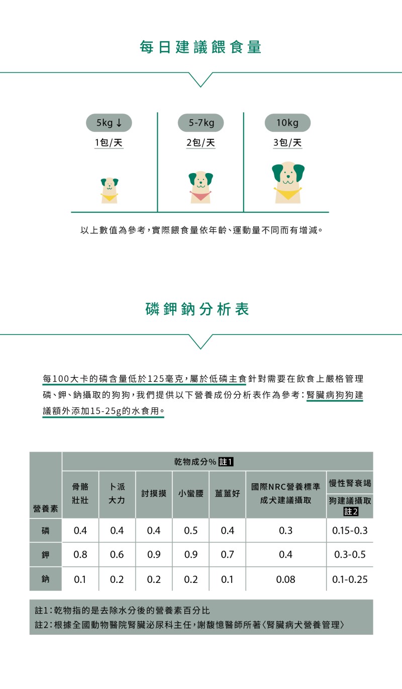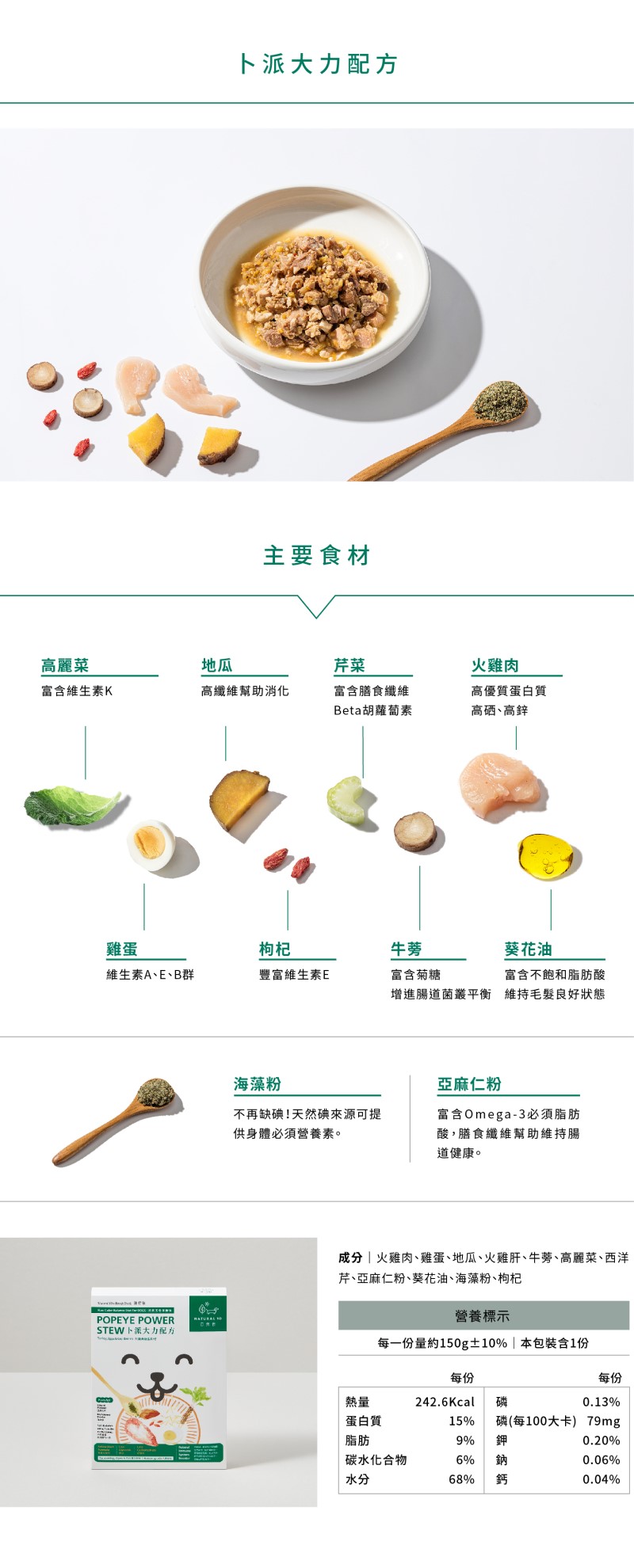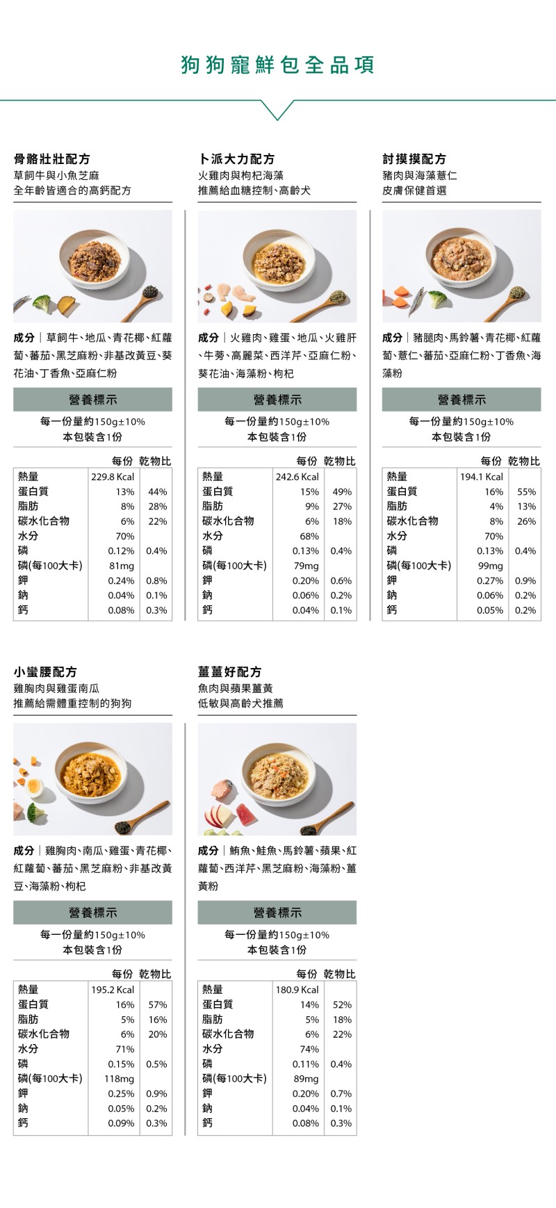 全年齡皆適合的高鈣配方,添加丁香魚、黑芝麻粉,搭配新鮮五色蔬菜,幫助毛孩骨質保健。