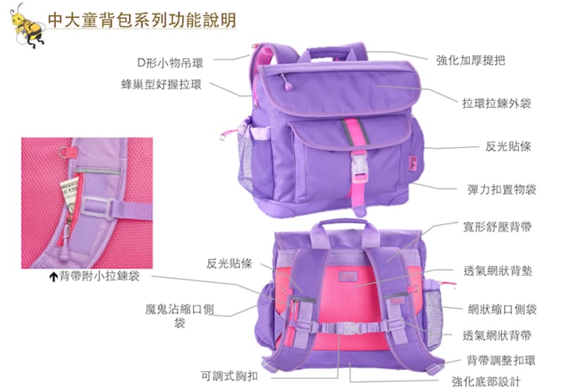 Bixbee 經典系列薰衣草紫中童輕量舒壓背/書包廠商直送