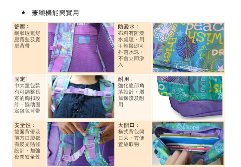 ● 防潑水布料材質