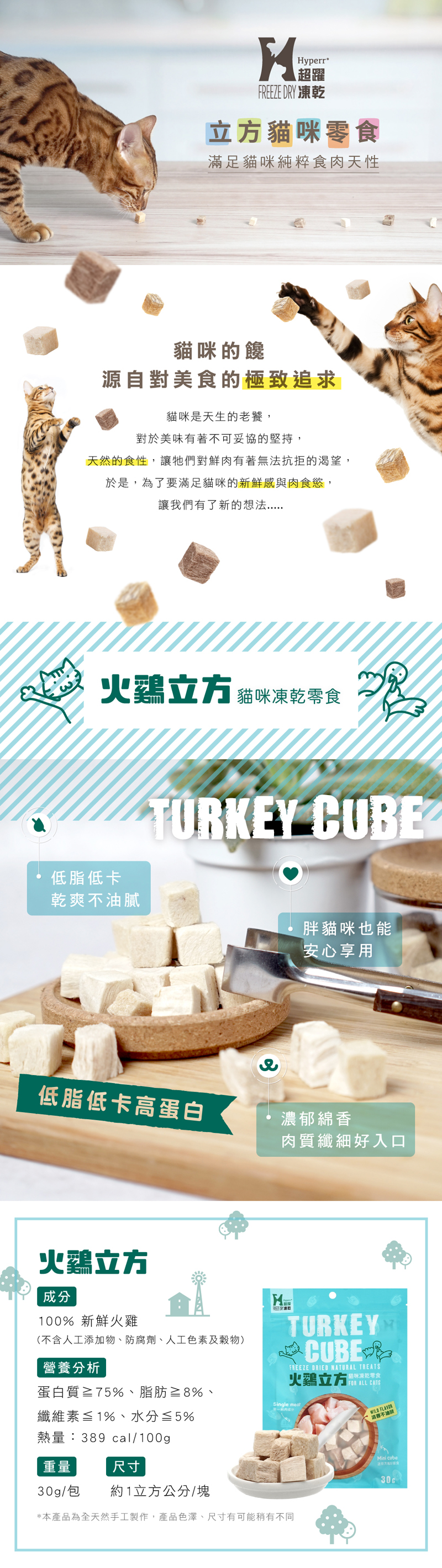 超躍凍乾貓咪零食-火雞立方30g