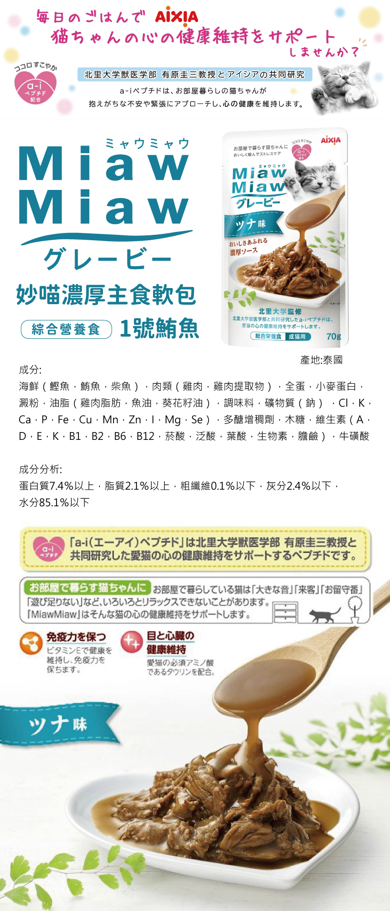 【Aixia 愛喜雅】妙喵濃厚主食軟包-鮪魚70g