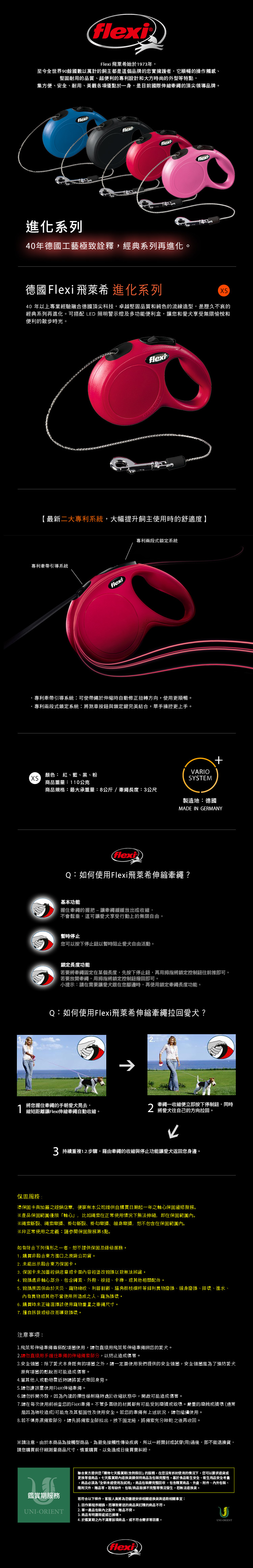 Flexi飛萊希進化索狀伸縮牽繩-藍XS