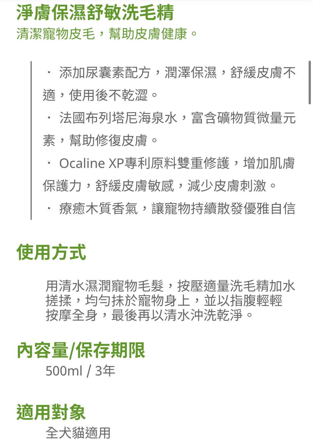 嬌寵醫生-淨膚保濕舒敏洗毛精500ml/瓶