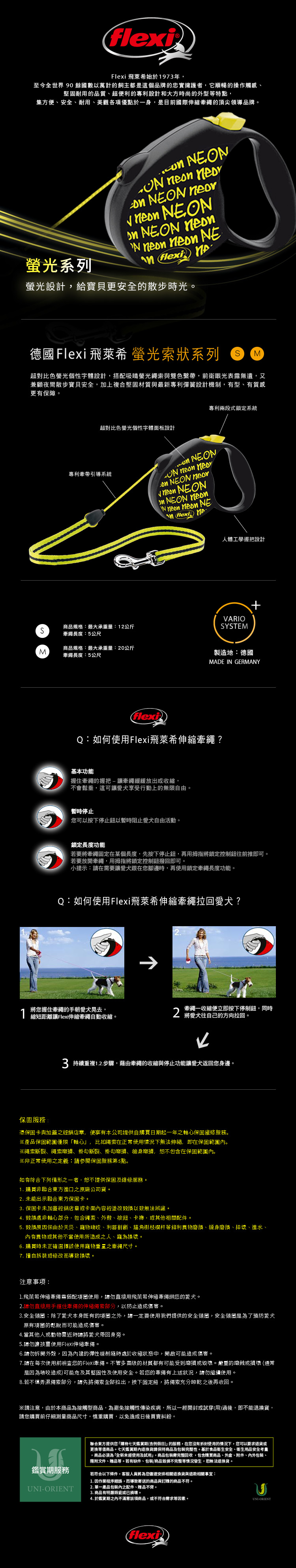 Flexi飛萊希螢光款索狀伸縮牽繩S