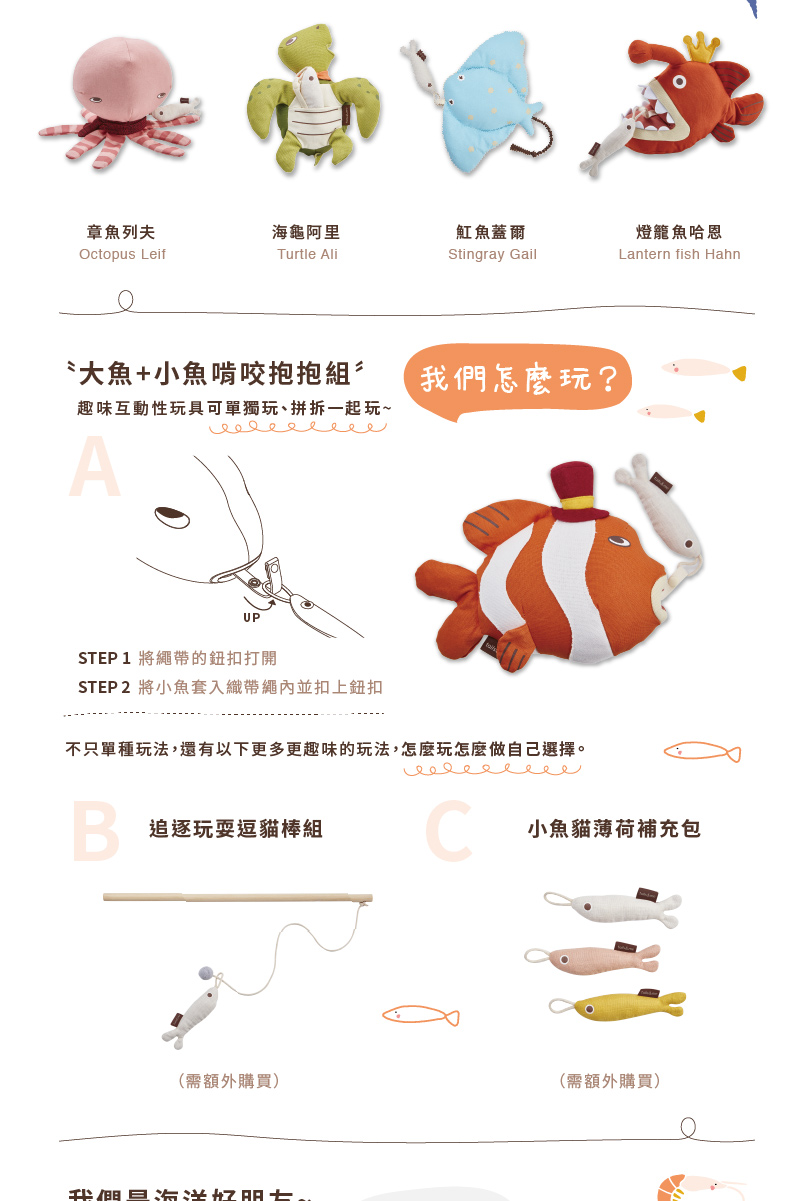 • 小魚內含台灣認證有機貓草薄荷,貓咪玩得開心又安心