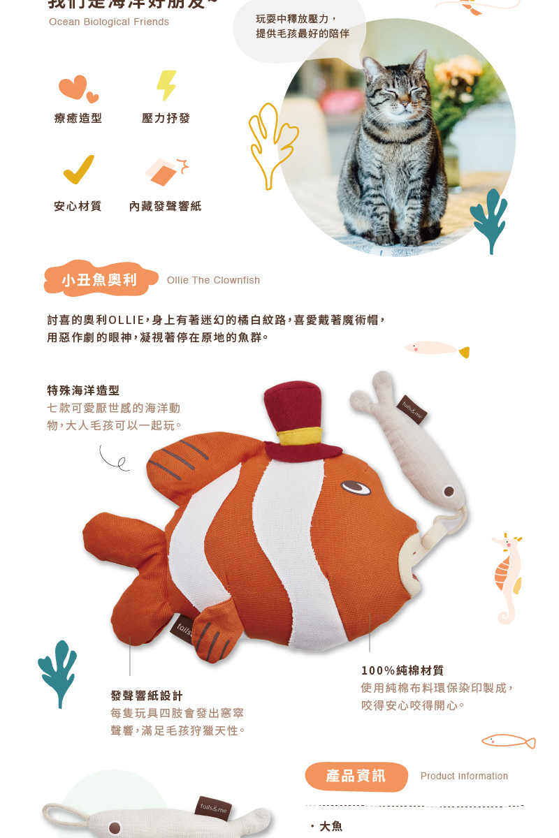 【尾巴與我】海洋動物寵物玩具啃咬抱抱組小丑魚