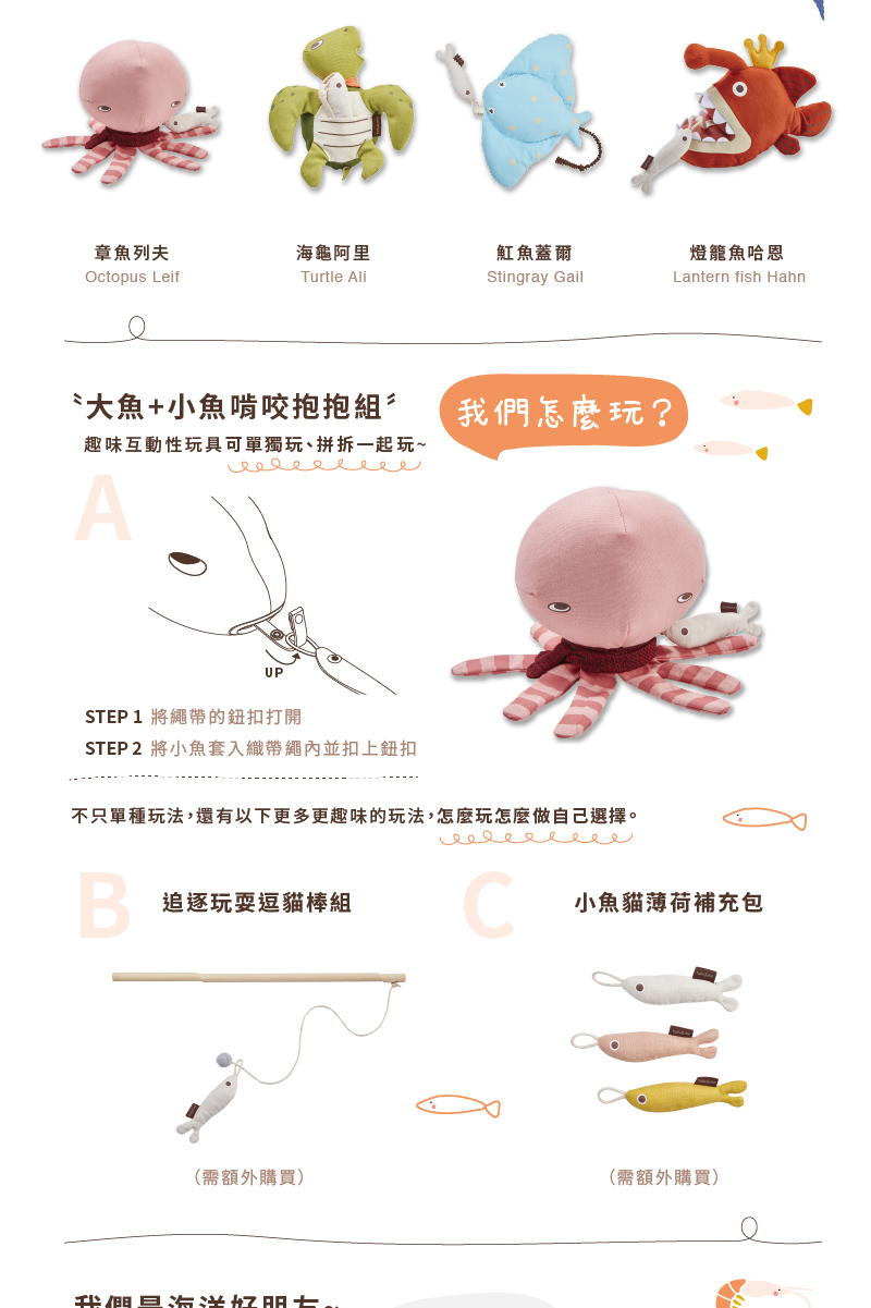• 小魚內含台灣認證有機貓草薄荷,貓咪玩得開心又安心