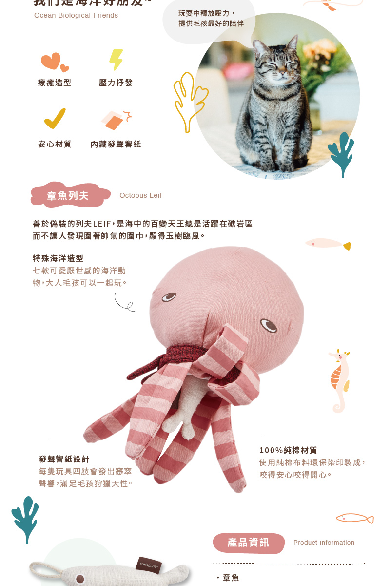 【尾巴與我】海洋動物寵物玩具啃咬抱抱組-章魚