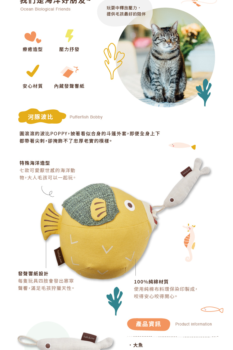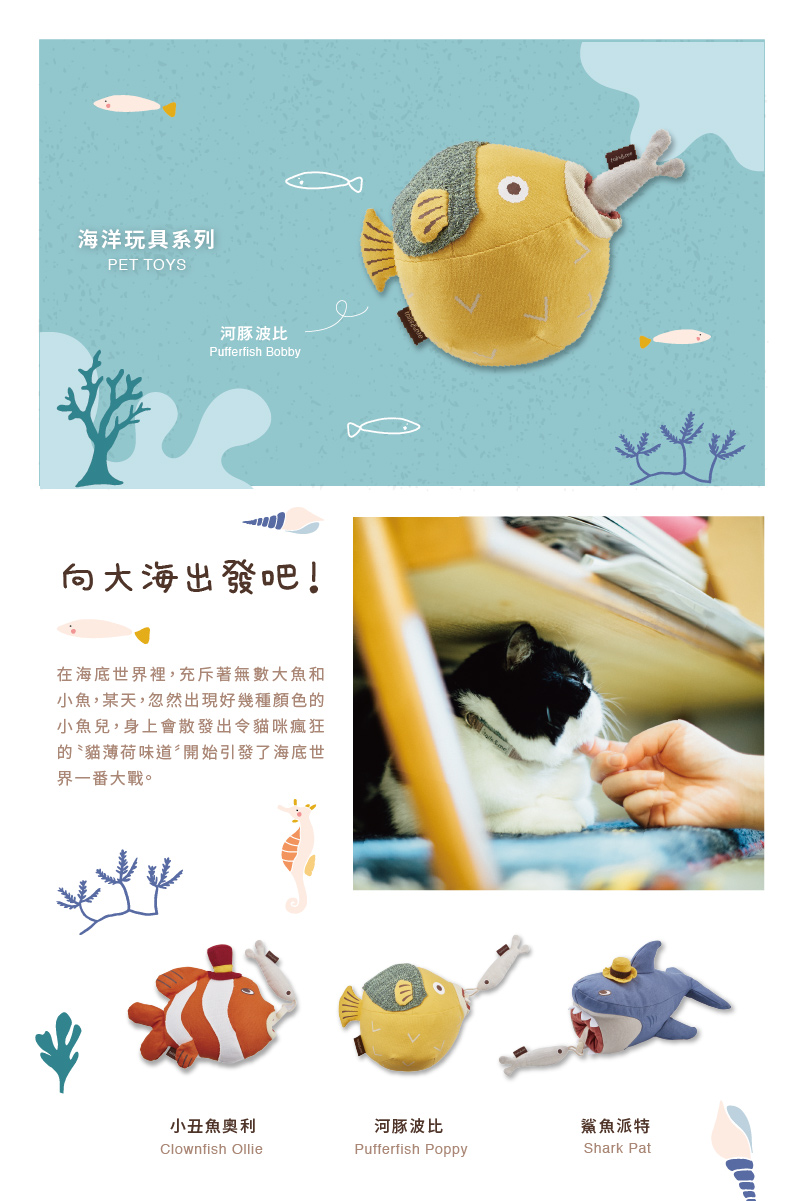 【尾巴與我】海洋動物寵物玩具啃咬抱抱組-河豚