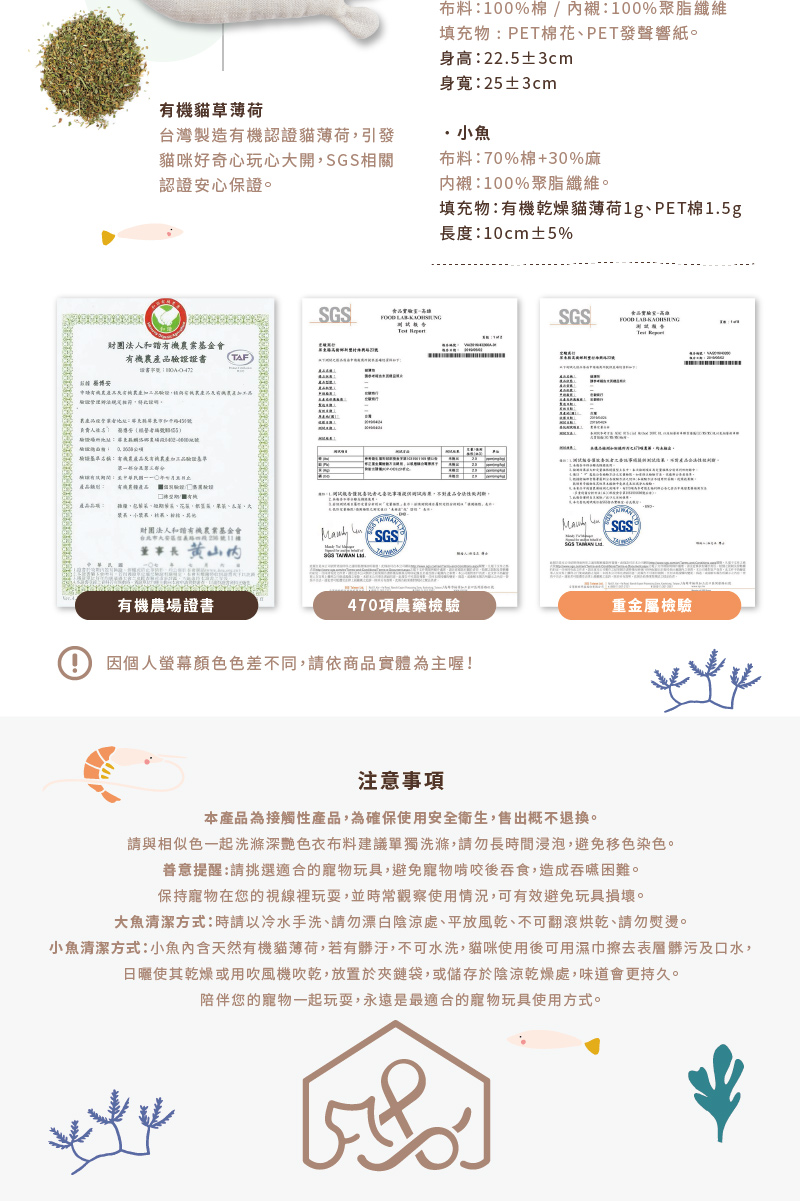 • 小魚內含台灣認證有機貓草薄荷,貓咪玩得開心又安心