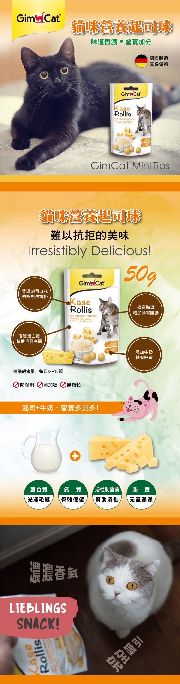 .成份:牛奶和奶製品(硬質奶酪4%)、酵母、油脂、礦物質