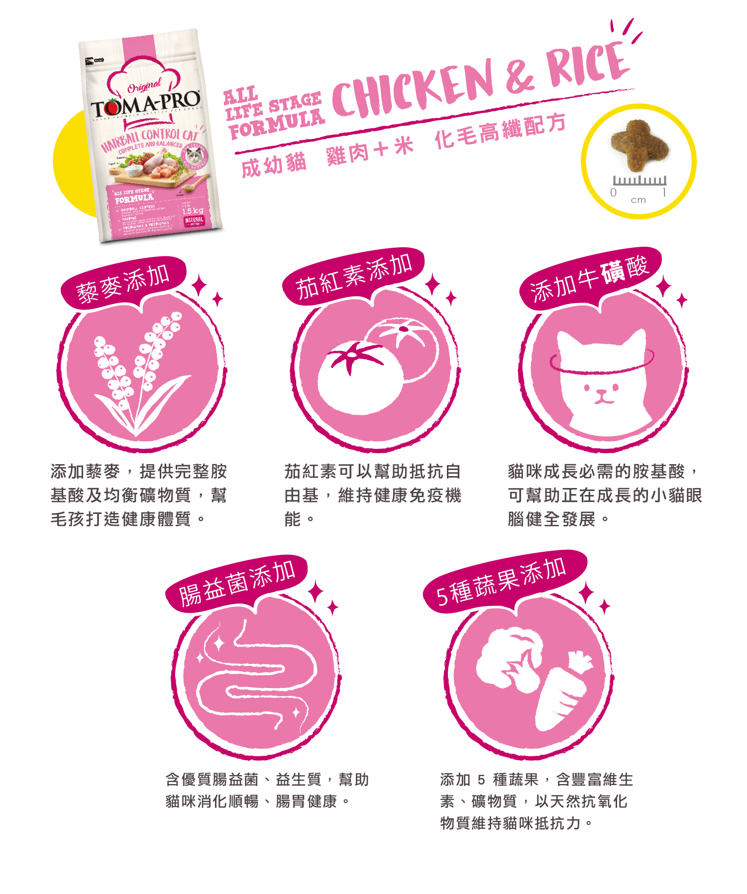 【TOMA-PRO優格】成幼貓化毛高纖雞肉+米飼料(3kg)