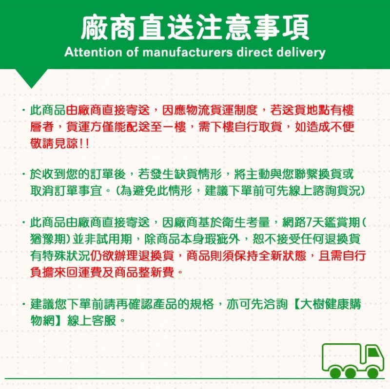 此商品由廠商直接寄送,因應物流貨運制度,若送貨地點有樓層者,貨運方僅能配送至一樓,需下樓自行取貨,如造成不便 敬請見諒!!