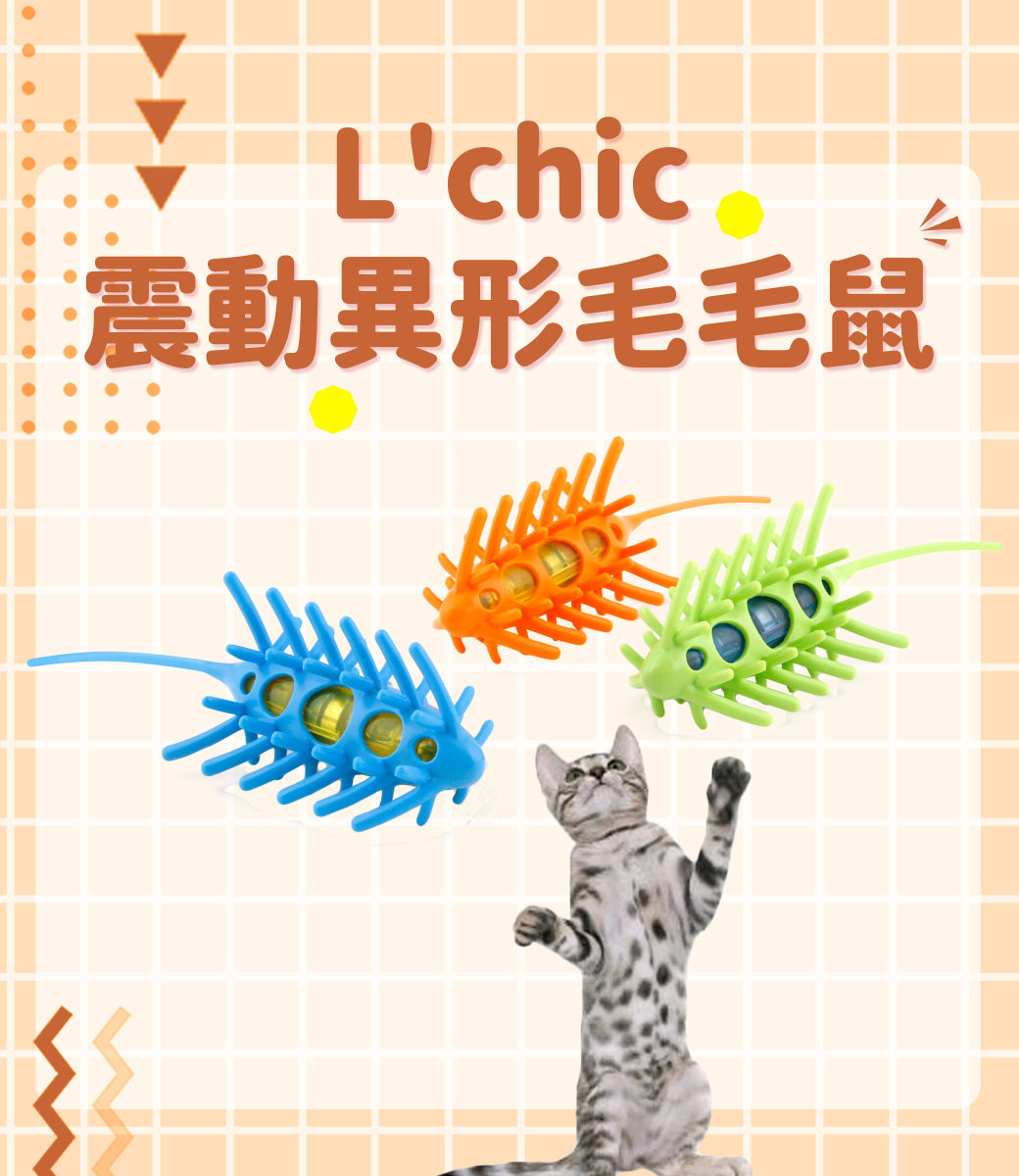 L’chic震動異形毛毛鼠(藍色) 抗憂鬱、增加貓咪運動量,鼠身會無方向感前進、震動,逗貓玩具