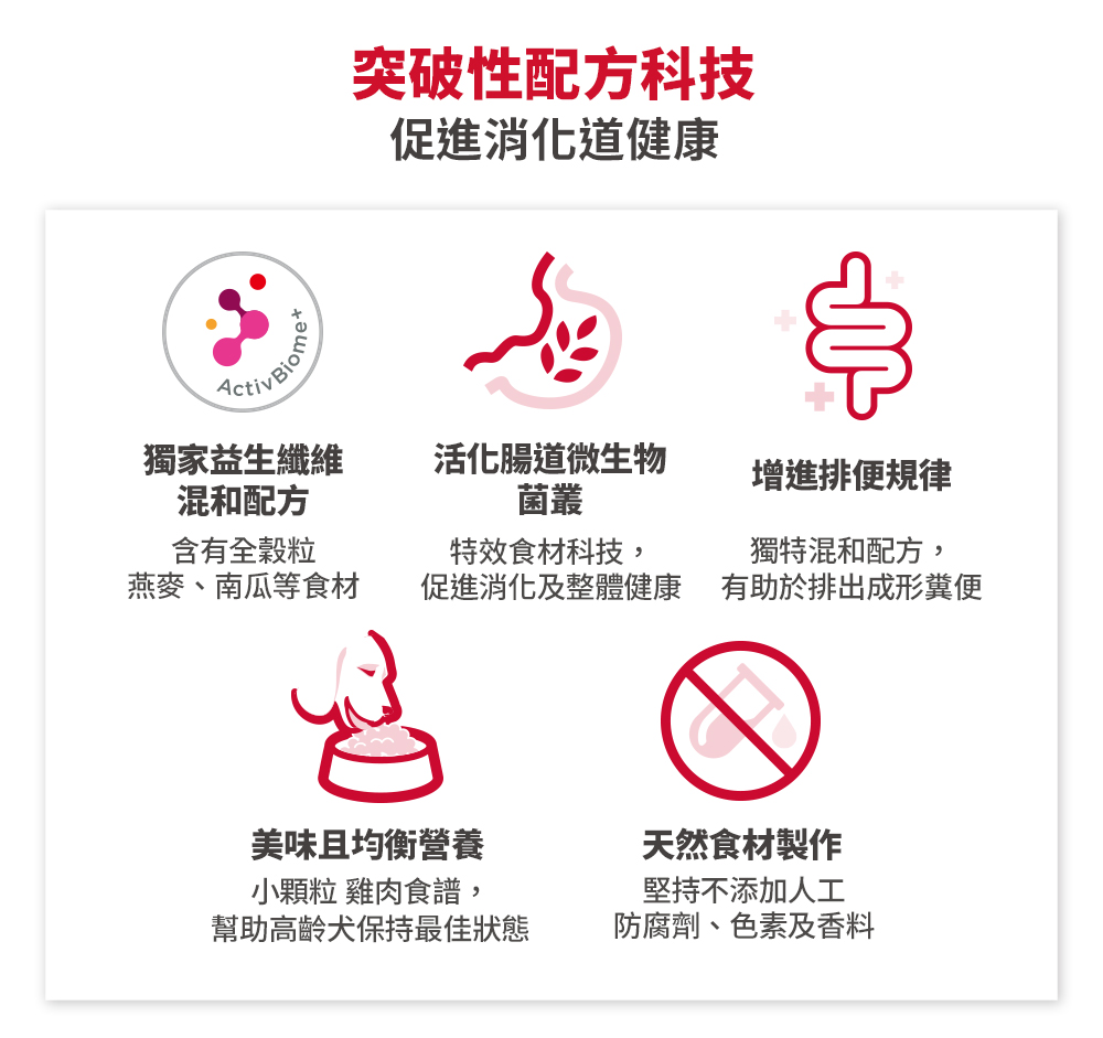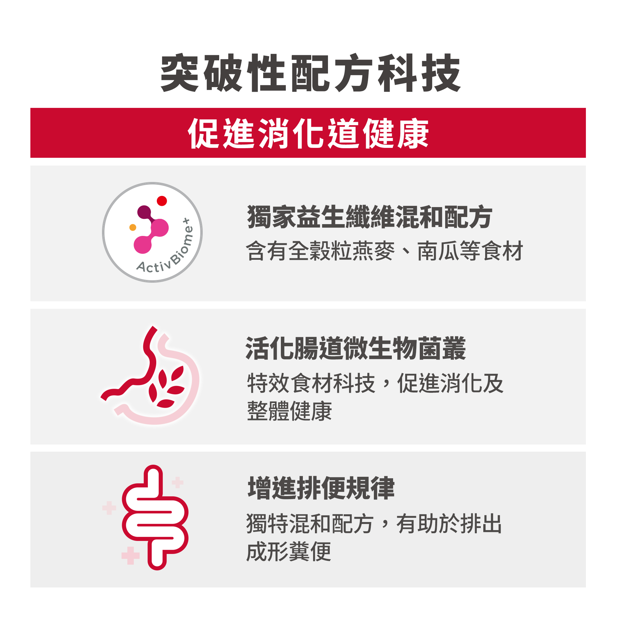 .ActivBiome+ (益菌纖活+科技): 獨家益生纖維混和配方,含有全穀粒燕麥、南瓜等食材