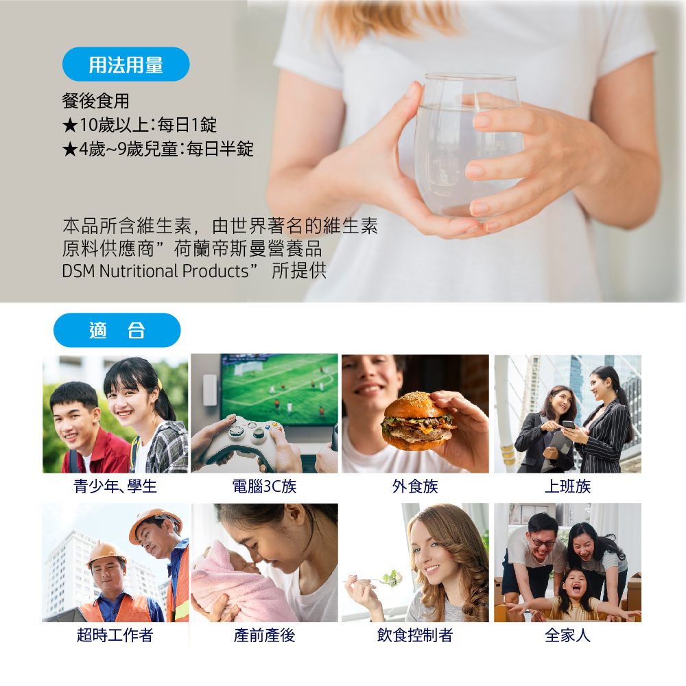 ■適合:全家保養、上班族、學生、勞心勞力者、電腦族,每日1錠,餐後配水食用