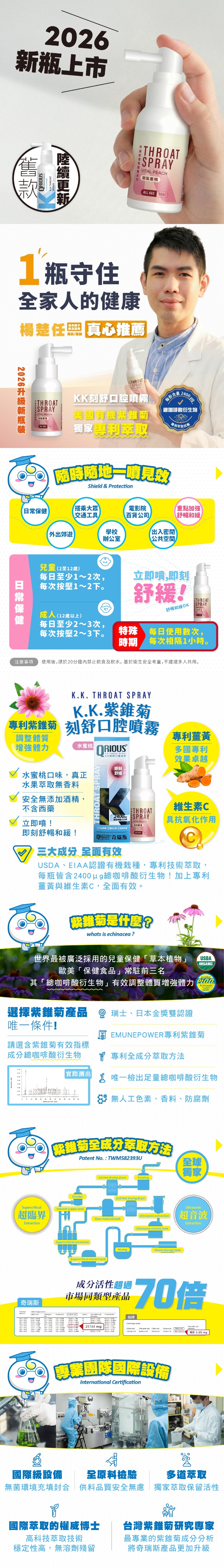 商品成分:水、紫錐菊萃取物(乳糖、紫錐菊萃取液)、D-山梨糖醇溶液、甘油、薑黃、維生素C、葡萄籽萃取物、水蜜桃原汁萃取