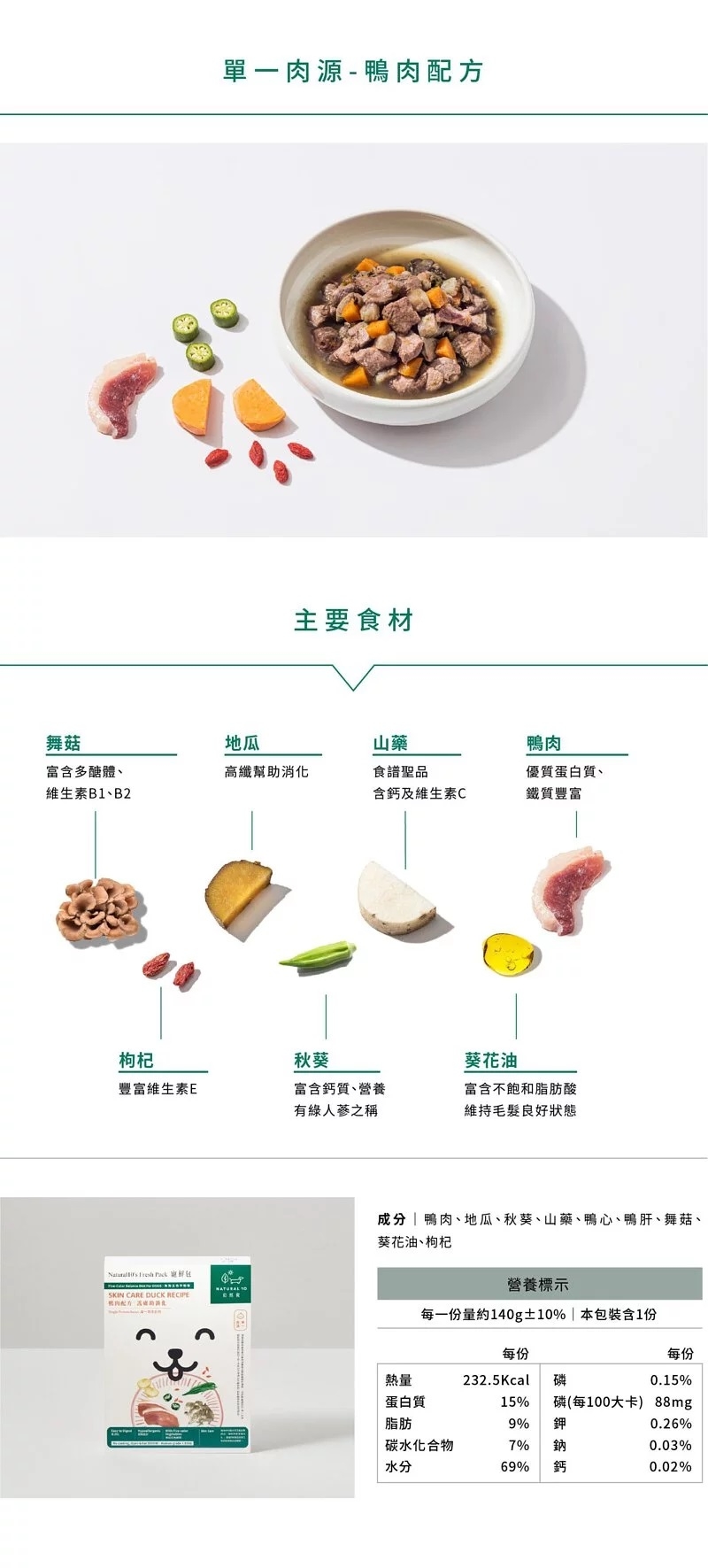 【自然食 Natural10】單一肉源系列寵鮮包-鴨肉配方140g