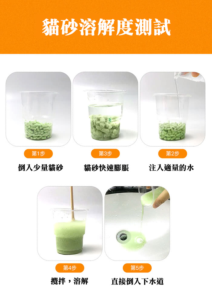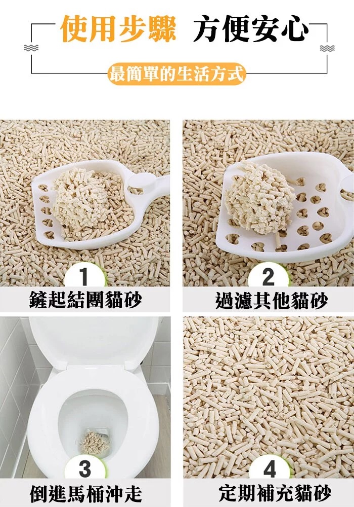完全使用黃金貓豆腐貓砂時即可安心將鏟起使用過的豆腐砂丟棄至馬桶沖掉,完全沒有阻塞的疑慮,既環保又省事。
