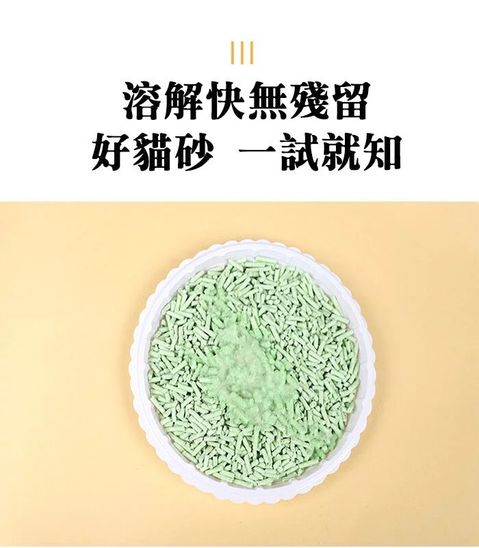 100%天然豆腐原料、澱粉等植物萃取強化除臭配方製成,對您、寵物和環境無害,既環保又好清理。