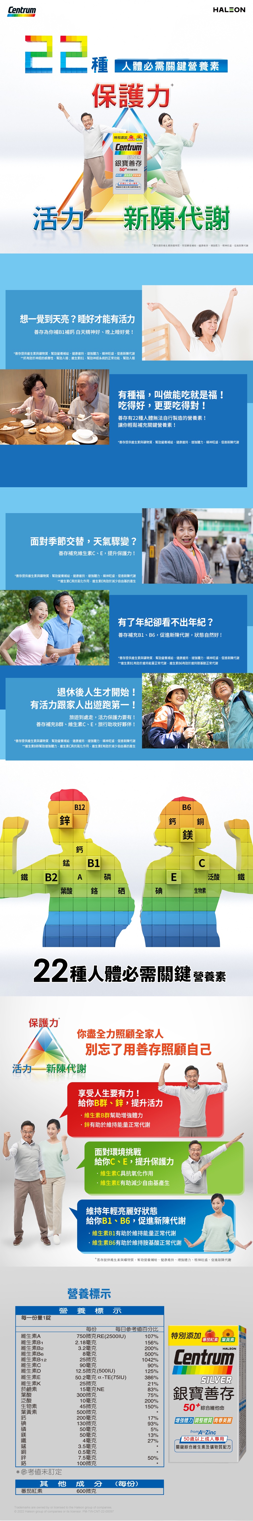 成分:碳酸鈣(碳酸鈣、麥芽糊精)、磷酸氫鈣(無水)、乙酸dl-α-生育醇酯(維生素E) (維生素E、辛烯基丁二酸鈉澱粉、二氧化矽)、微結晶狀α-纖維素、抗壞血酸(維生素C) (維生素C、羥丙基甲基纖維素)、氧化鎂、聚乙烯聚吡咯烷酮、羥丙基甲基纖維素、菸鹼醯胺、丁烯二酸亞鐵、二氧化鈦、本多酸鈣、三氯化鉻(磷酸氫鈣(無水)、三氯化鉻)、硫酸錳、鹽酸吡哆辛(維生素B6)、氧化鋅、合成番茄紅素(蔗糖、明膠、玉米澱粉、合成番茄紅素、水、L-抗壞血酸棕櫚酸酯(抗氧化劑)、生育醇(維生素E) (抗氧化劑)、L-抗壞血酸鈉(抗氧化劑)、磷酸鈣)、膽鈣化醇(維生素D3)(辛烯基丁二酸鈉澱粉、蔗糖、L-抗壞血酸鈉(抗氧化劑)、中鏈三酸甘油酯、二氧化矽、生育醇(維生素E)(抗氧化劑)、維生素D3)、β-胡蘿蔔素(明膠、玉米澱粉、β-胡蘿蔔素、蔗糖、水、L-抗壞血酸鈉(抗氧化劑)、磷酸鈣、混合濃縮生育醇(抗氧化劑))、滑石粉、葉黃素(辛烯基丁二酸鈉澱粉、乾葡萄糖漿、蔗糖、葉黃素、L-抗壞血酸鈉(抗氧化劑)、水)、生物素(磷酸氫鈣(無水)、生物素)、硬脂酸鎂、二氧化矽、核黃素(維生素B2)、氰鈷胺明(維生素B12) (辛烯基丁二酸鈉澱粉、檸檬酸鈉、檸檬酸、二氧化矽、維生素B12)、硝酸硫胺明(維生素B1,硝酸噻胺)、聚糊精、麥芽糊精、維生素A醋酸鹽(辛烯基丁二酸鈉澱粉、完全氫化棕櫚油、維生素A醋酸鹽、海藻糖、玉米澱粉)、中鏈三酸甘油酯、硫酸銅、維生素K1(阿拉伯膠、維生素K1、蔗糖)、氧化鐵、葉酸、碘化鉀。