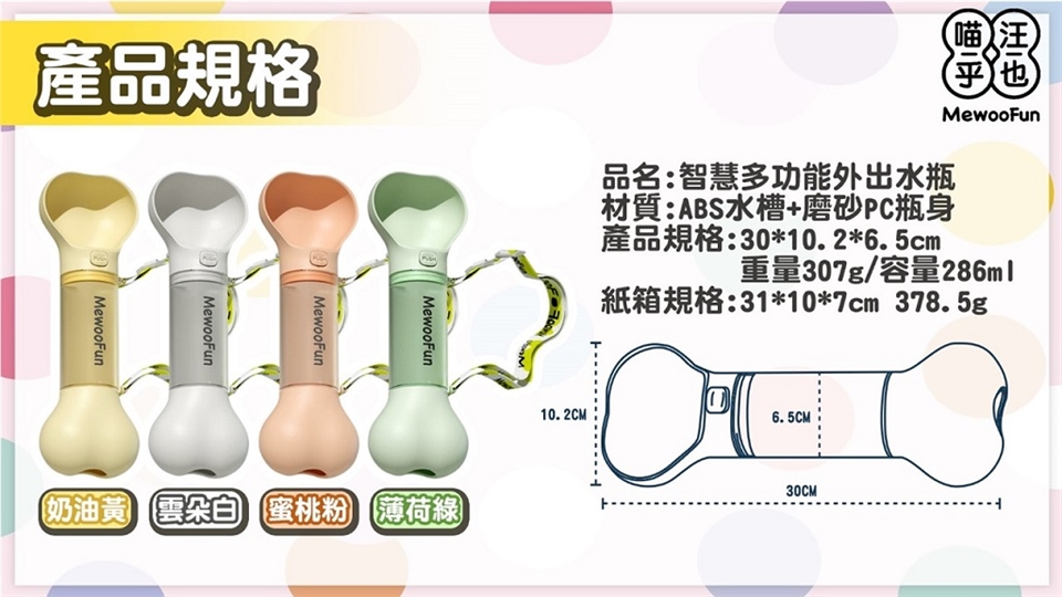 【喵乎汪也】智慧多功能外出水瓶- 雲朵白