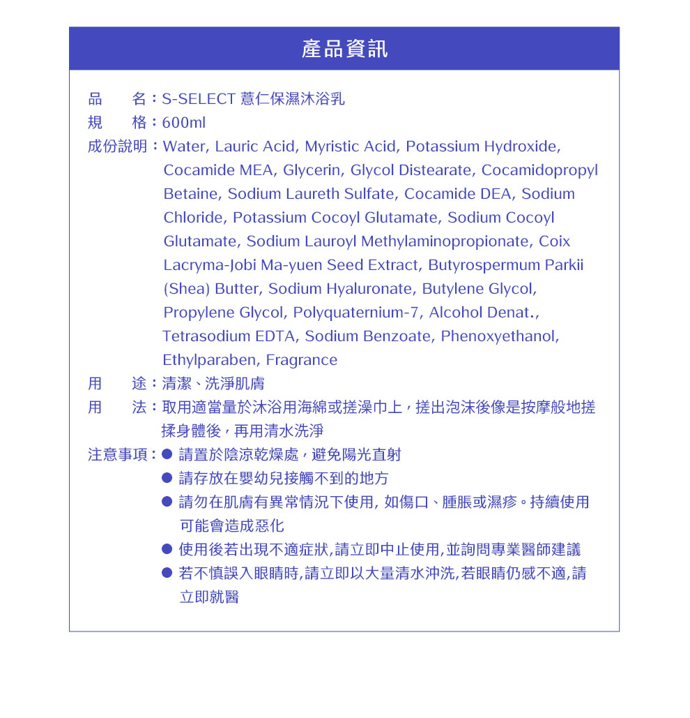 【S-SELECT】薏仁保濕沐浴乳-補充包-1000ml