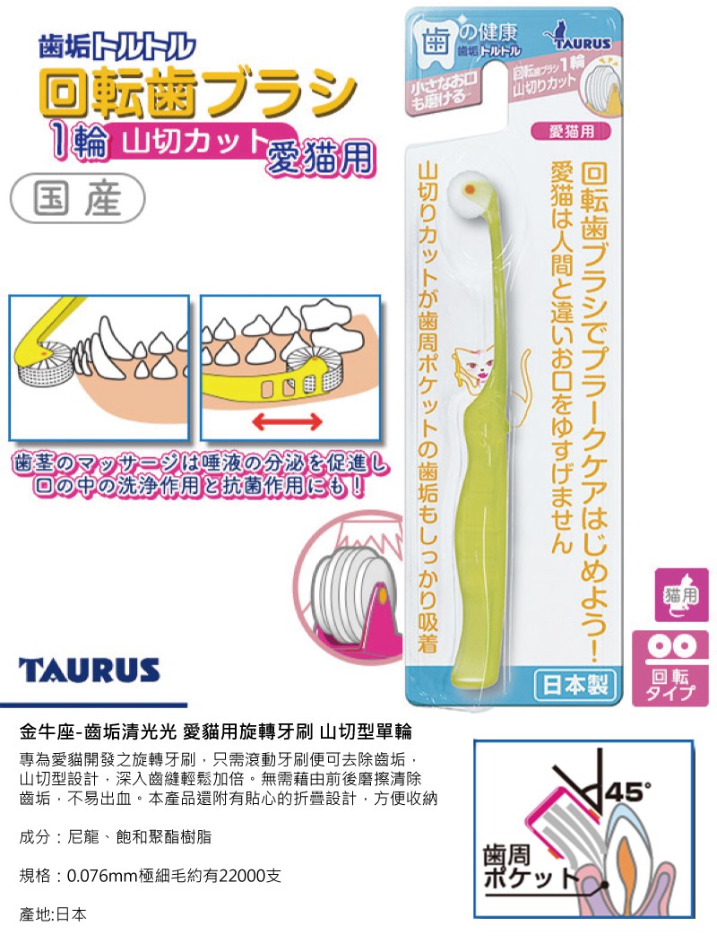 【TAURUS 金牛座】貓齒垢清光光旋轉牙刷-山切單輪