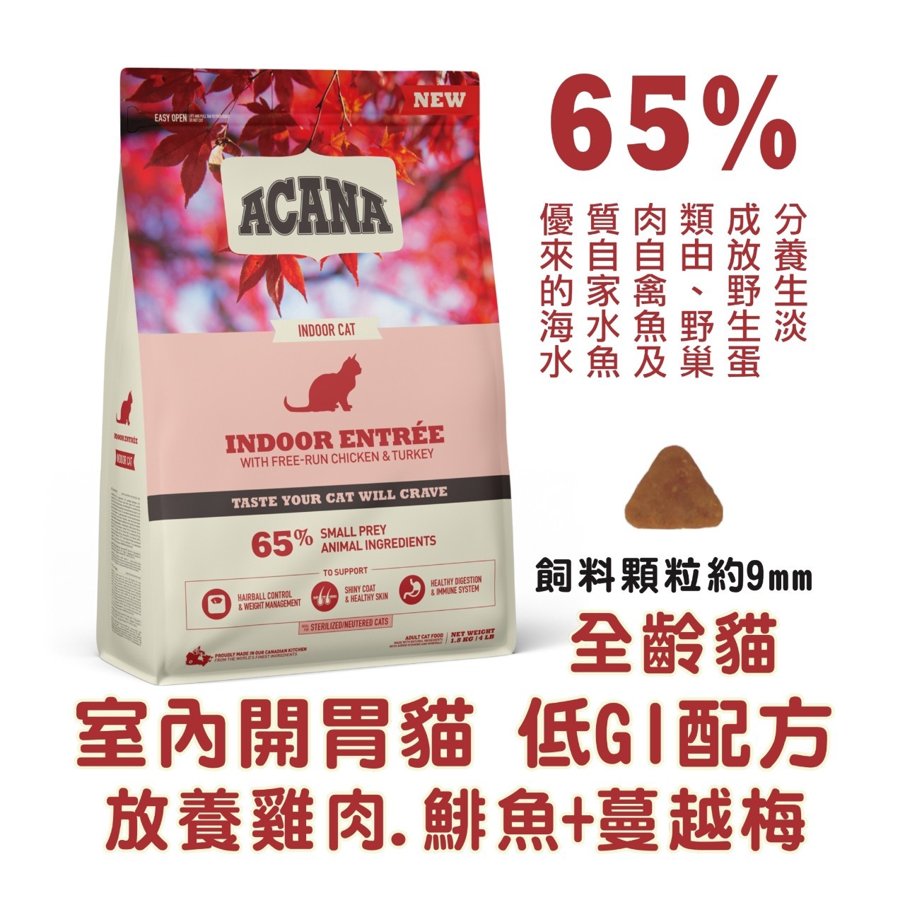 【ACANA 愛肯拿】室內開胃低GI配方 放養雞肉+鯡魚+蔓越莓4.5kg