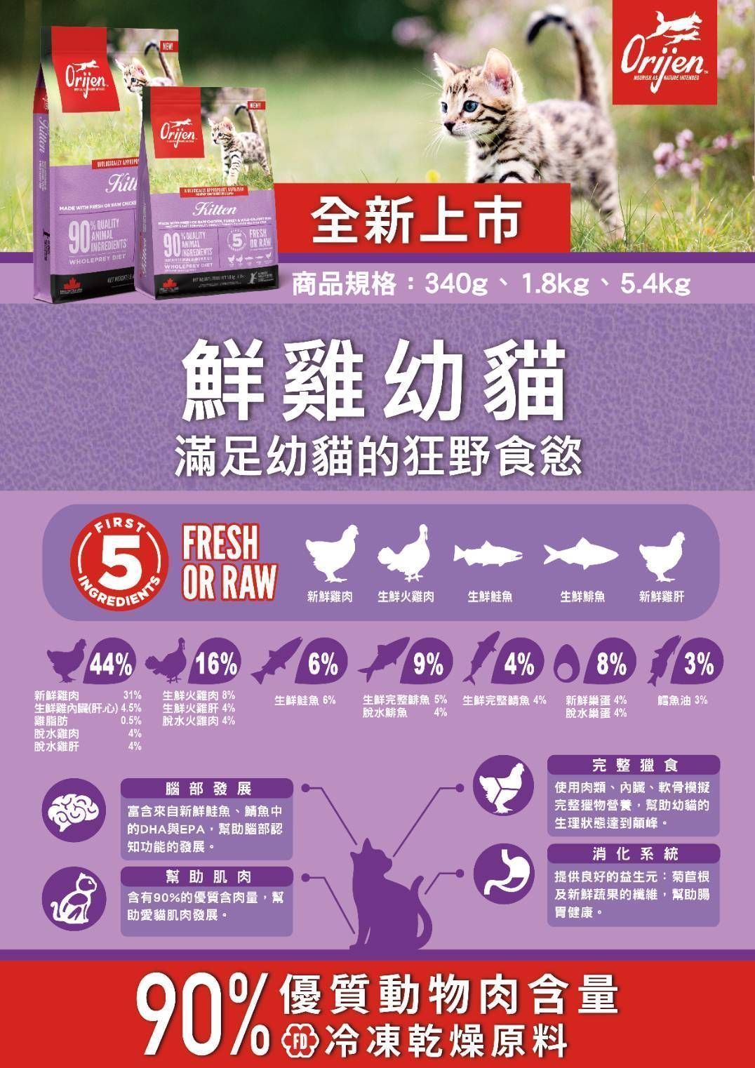 .品名:【Orijen】極緻鮮雞幼貓無穀配方