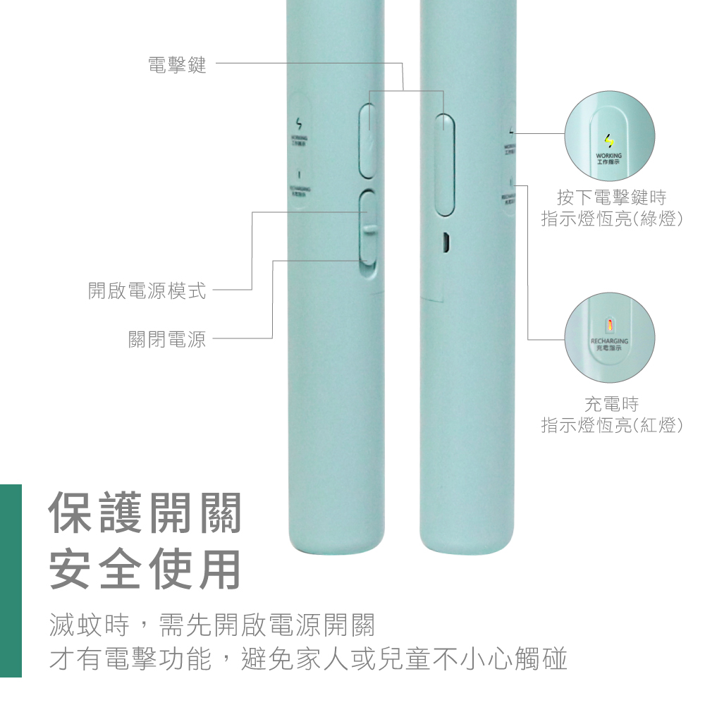 .迅速擊斃蚊蟲,設有保護開關避免誤觸